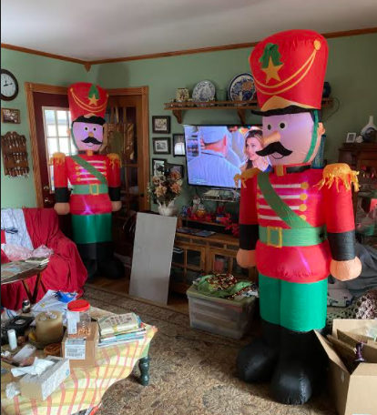 The soldiers are perfect size for the garage. And, all the garland with new lights running across the garage.