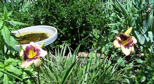 This is a new Day Lily form last year. Love the burgundy and yellow centers. I'm big on GREEN and textures to surround my flowers. Soon there will lots of color here.
